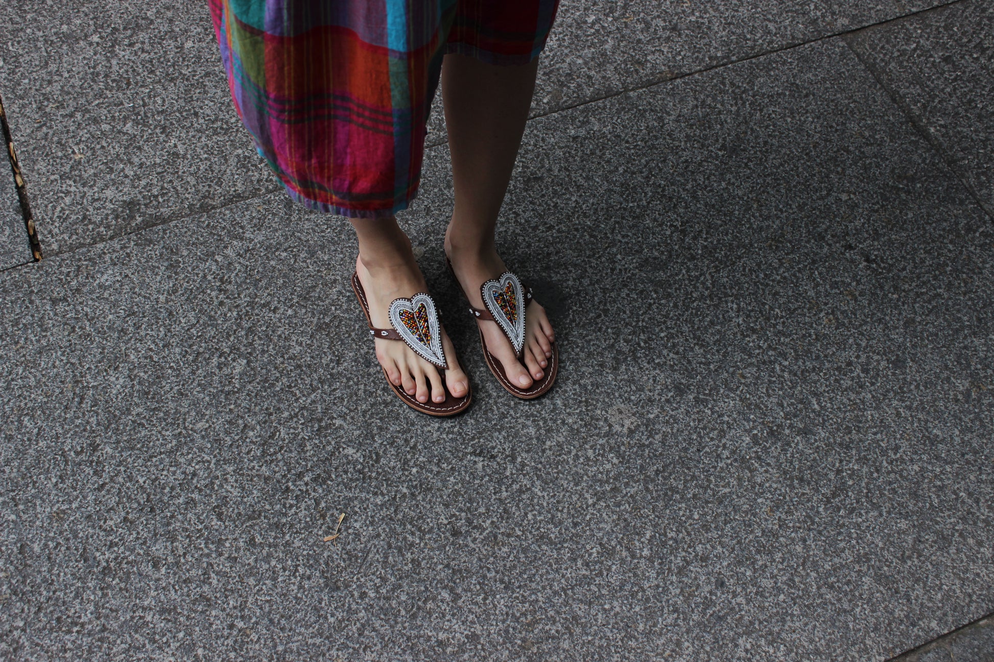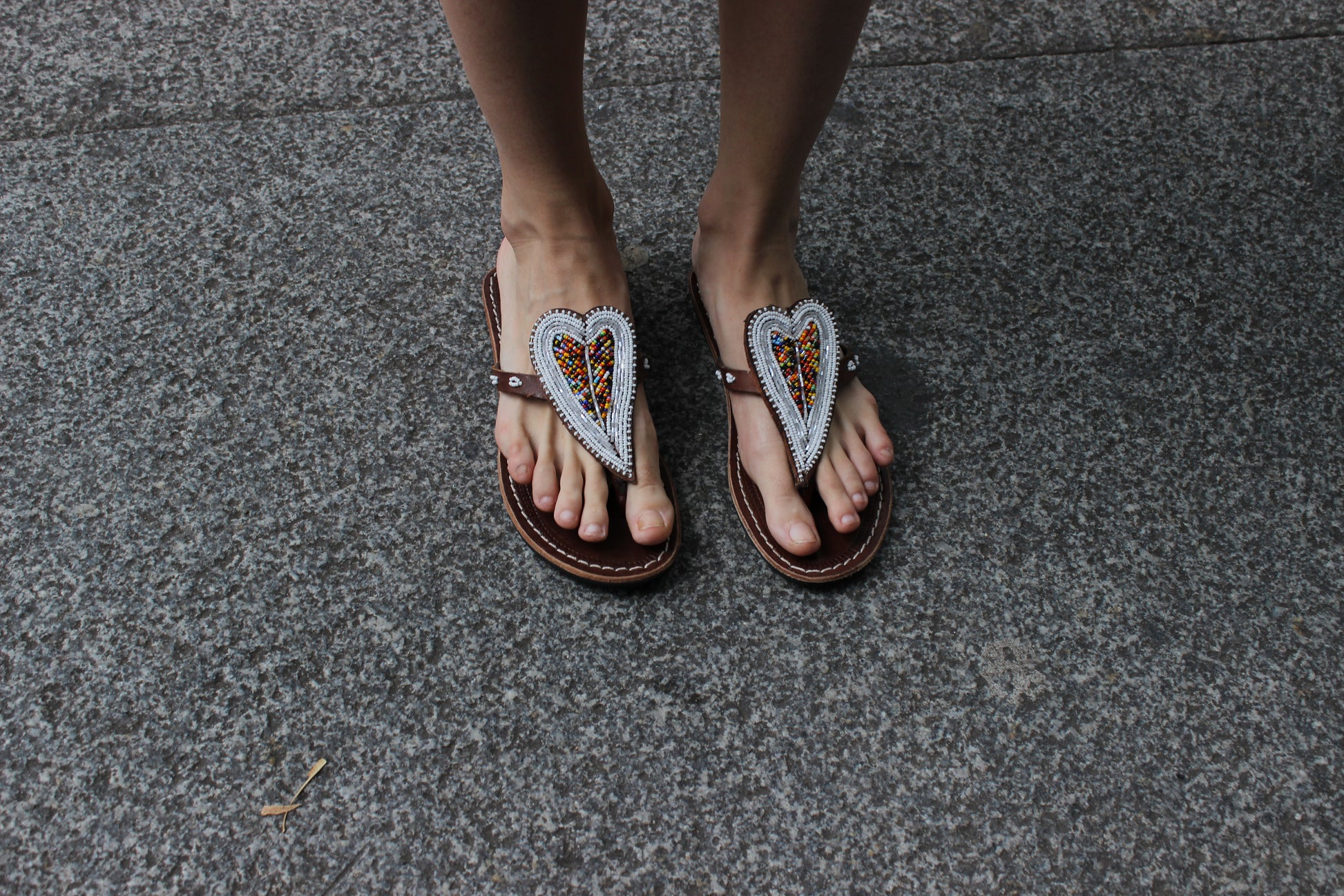An elegant and authentic pair of African-inspired women's sandals with a unique and striking design. 100% genuine leather.