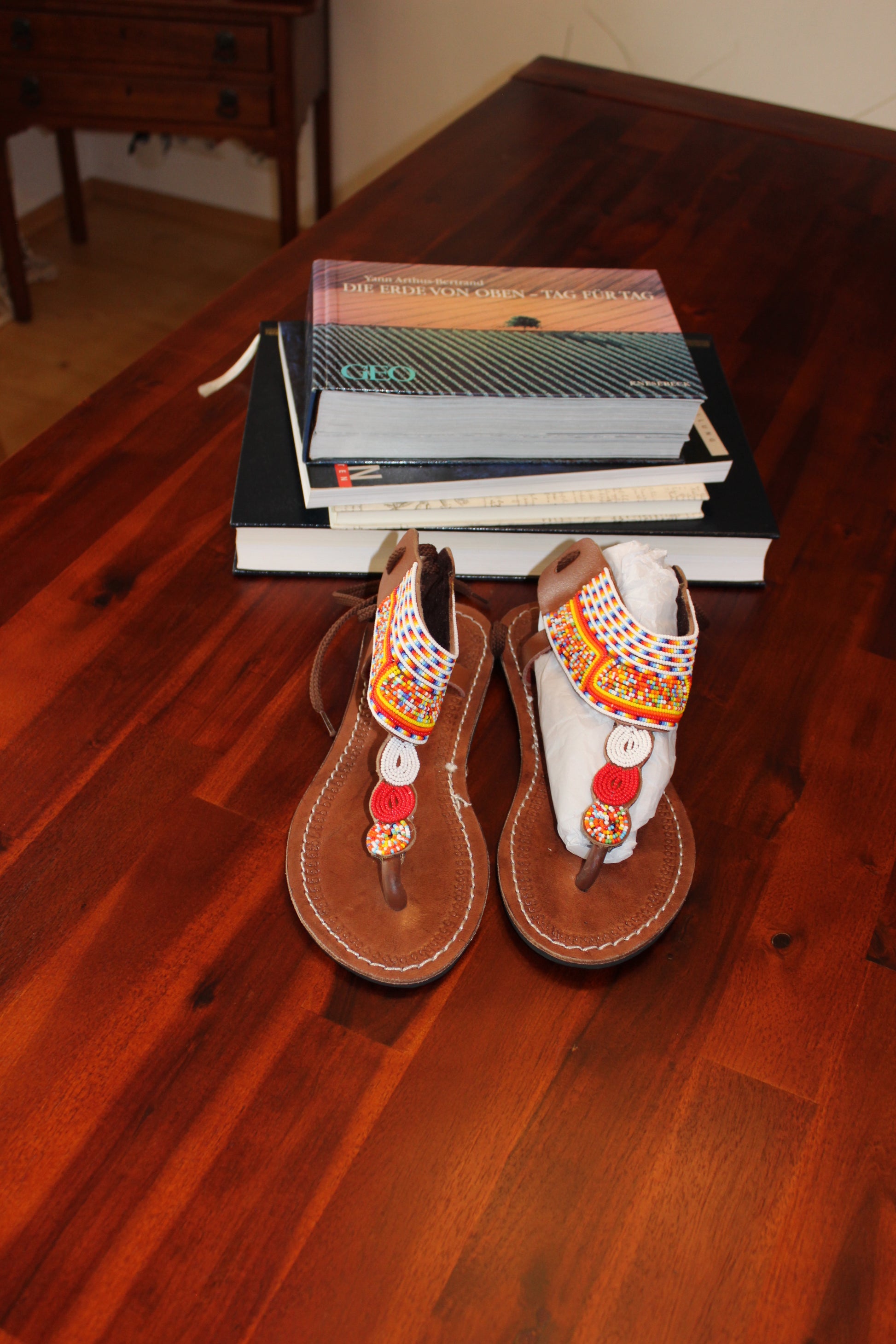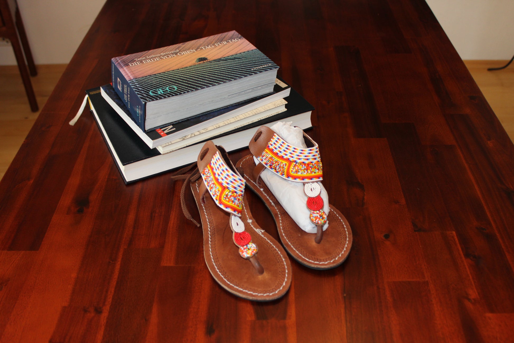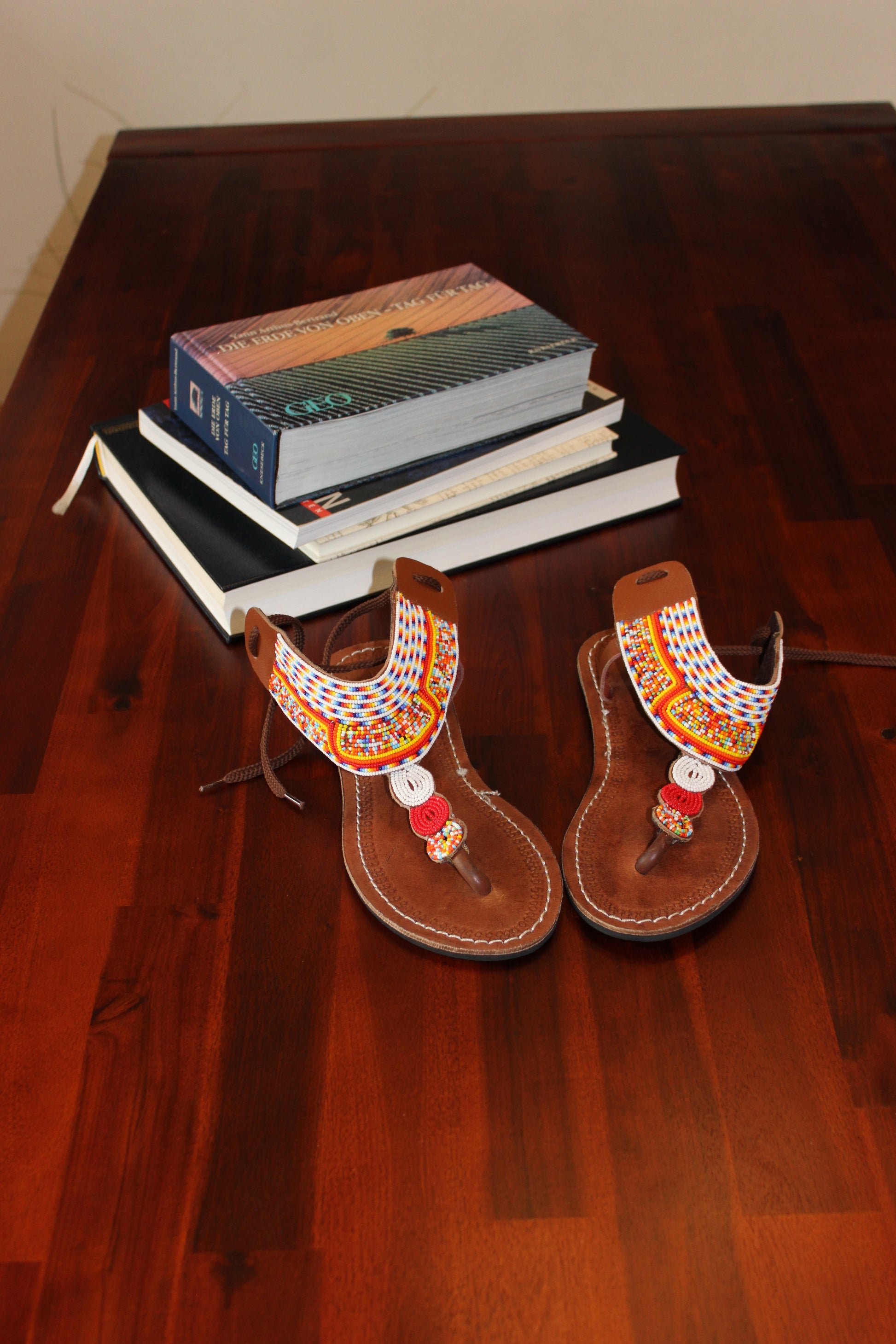 An elegant and authentic pair of African-inspired women's sandals with a unique and striking design. 100% genuine leather.