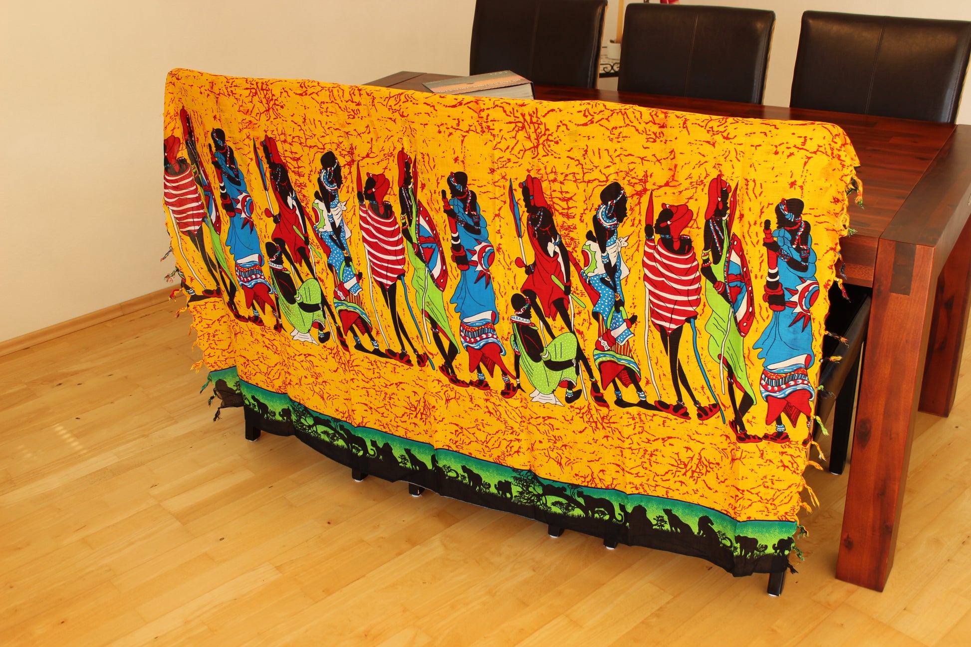 Scarf women , yellow and red, with Massai, Schal, Strandtuch