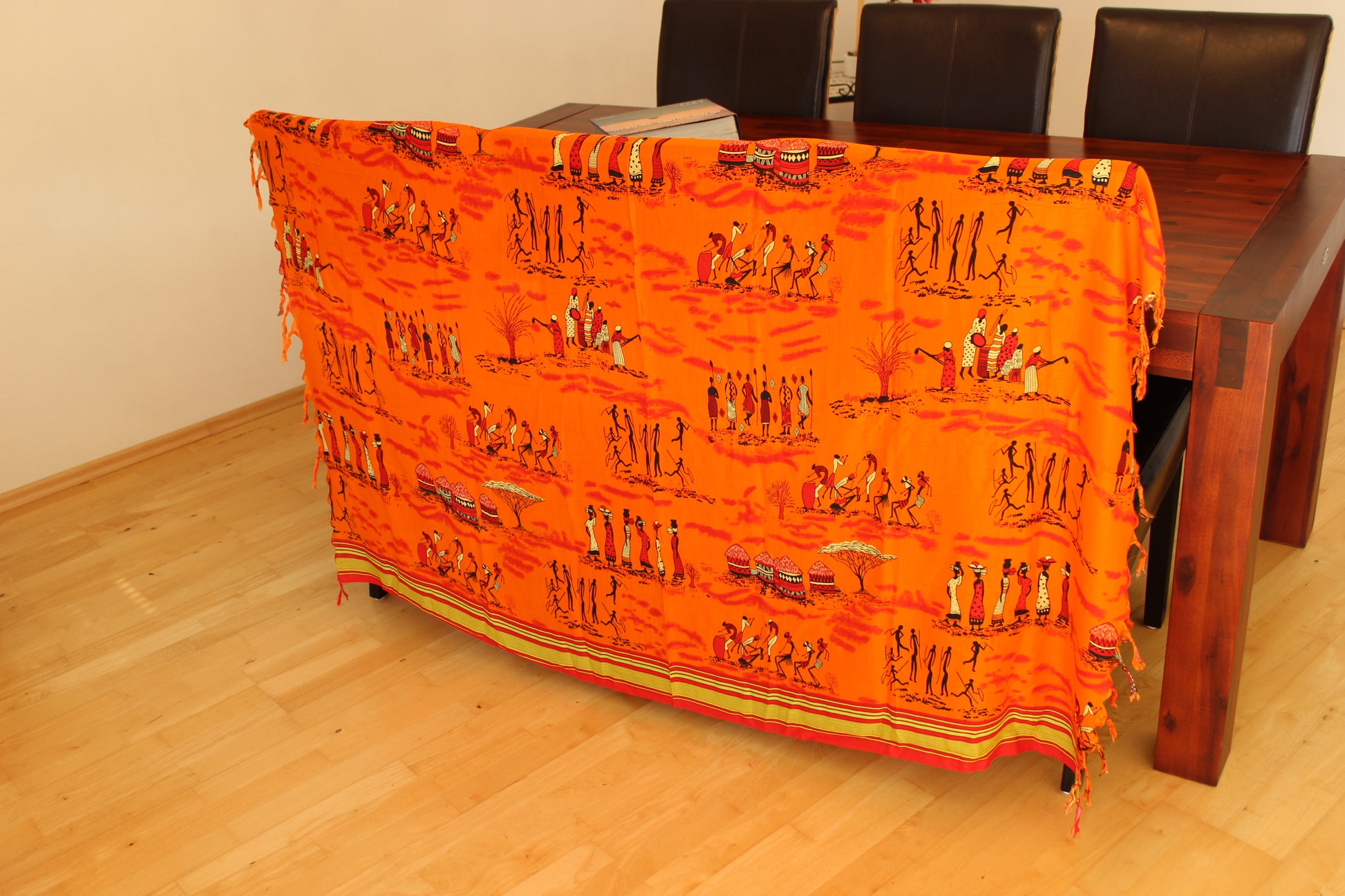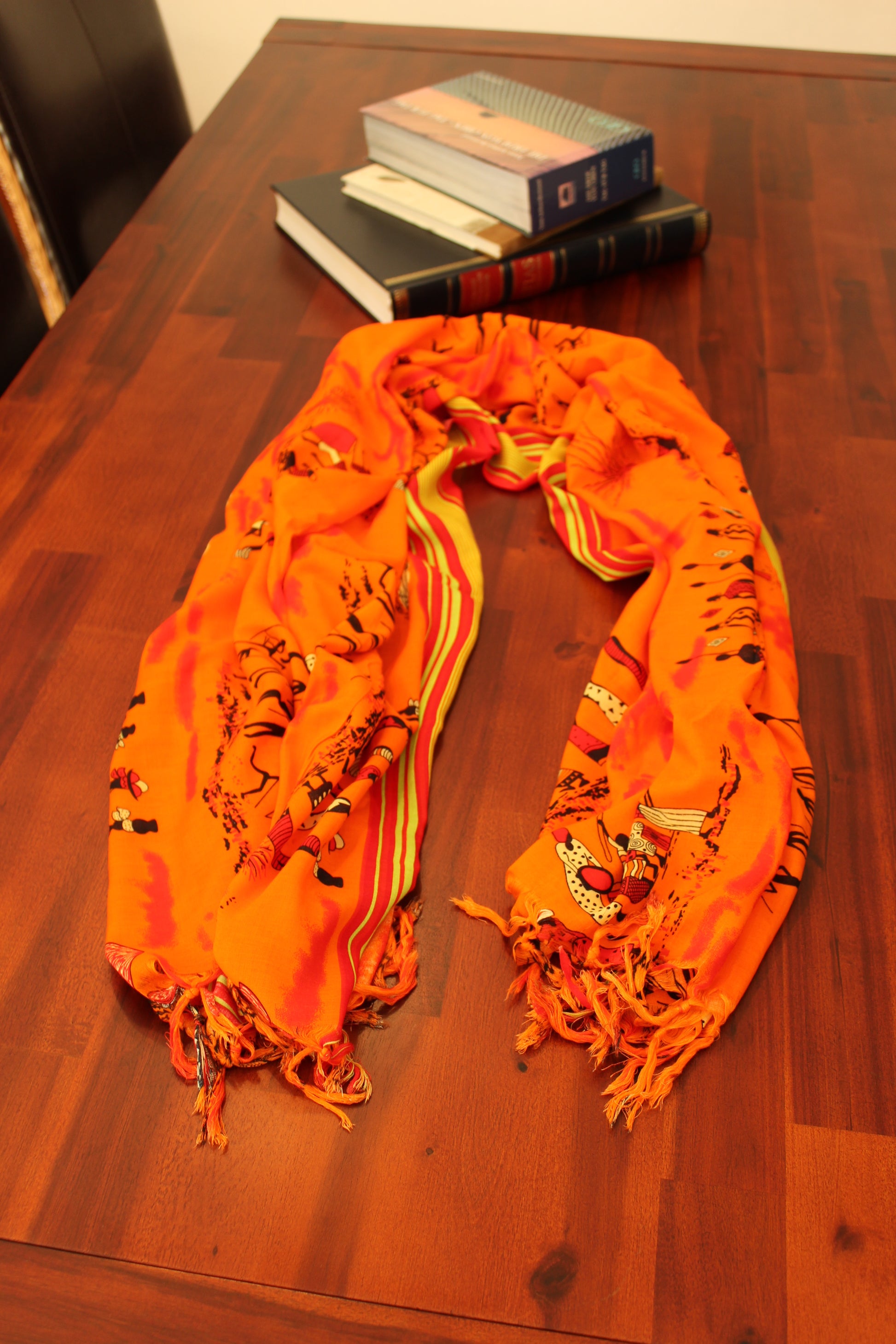 Scarf women , orange, with Massai family , Schal, Strandtuch