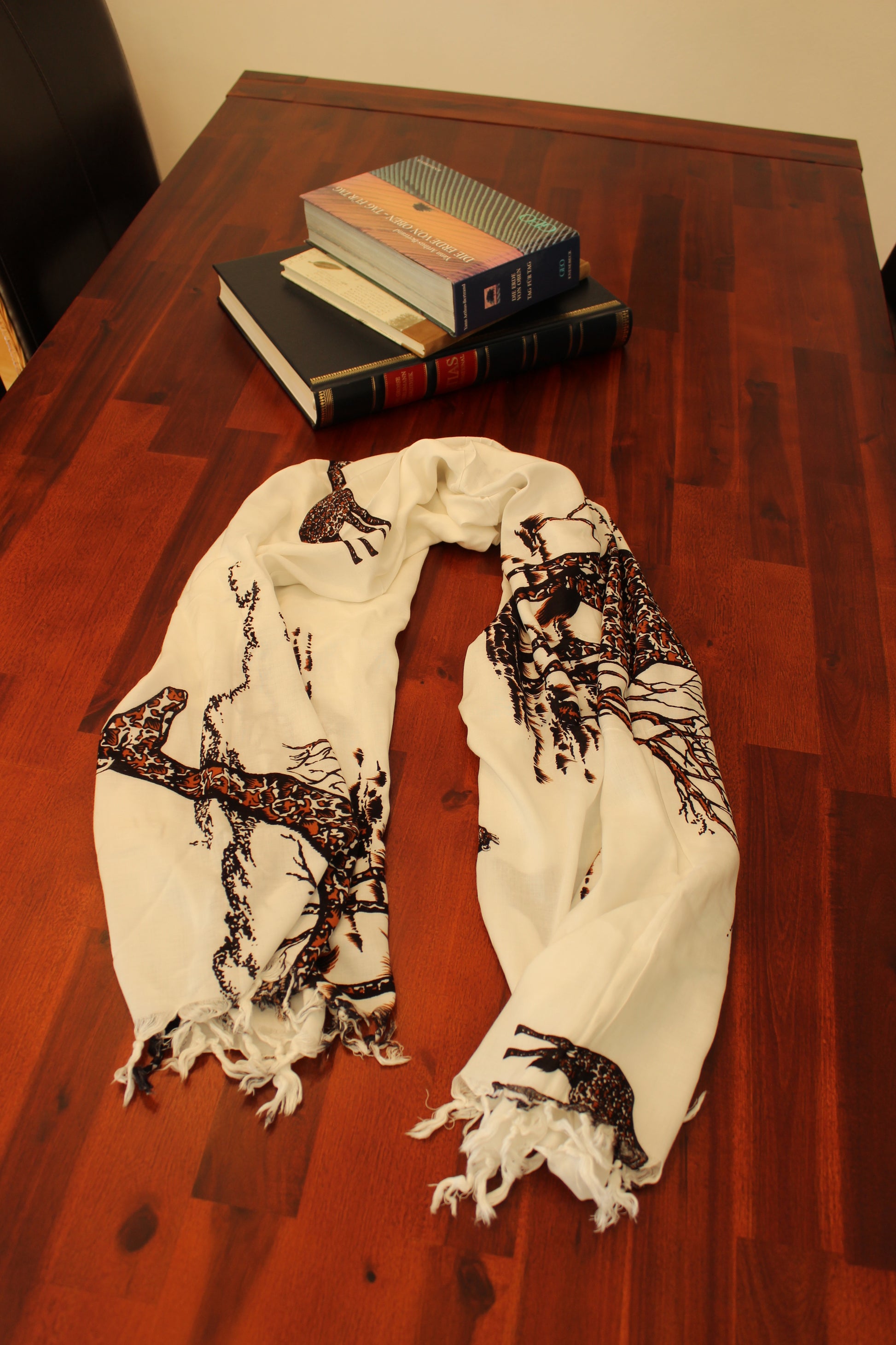 Scarf women , white, with giraffe , Schal, Strandtuch