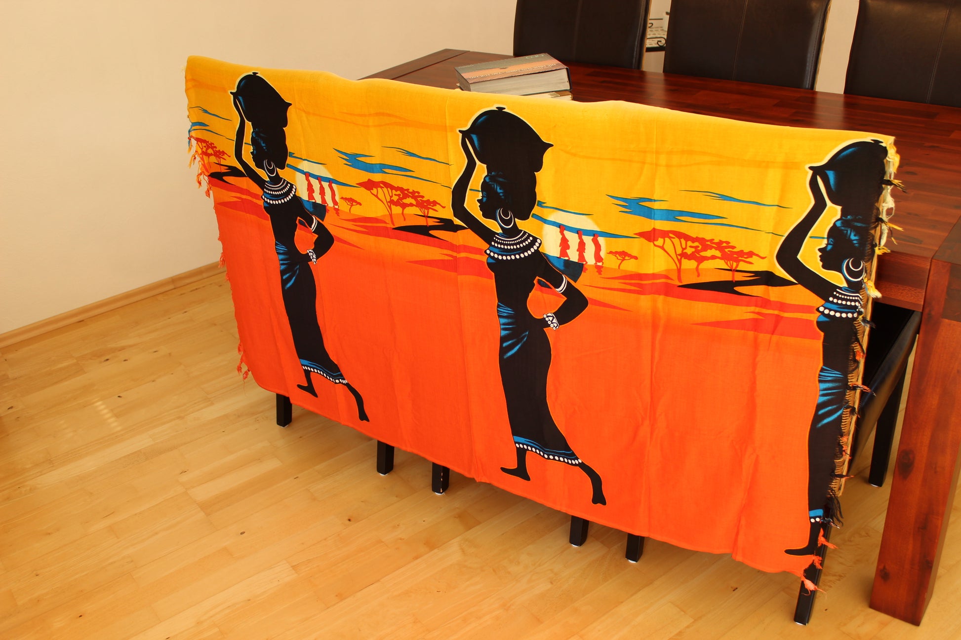 Scarf women , yellow, orange, with Massai woman , Schal, Strandtuch